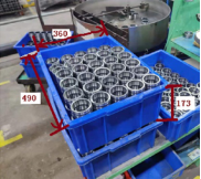 1.43車廂前后方向(牽引方向)設(shè)計有固定式護欄(高300mm),且需設(shè)計有方便手推車廂到每個工位裝卸料的把手。