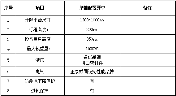 7、所提供的產品需符合液壓升降平臺行業標準、安全標準的相關要求。