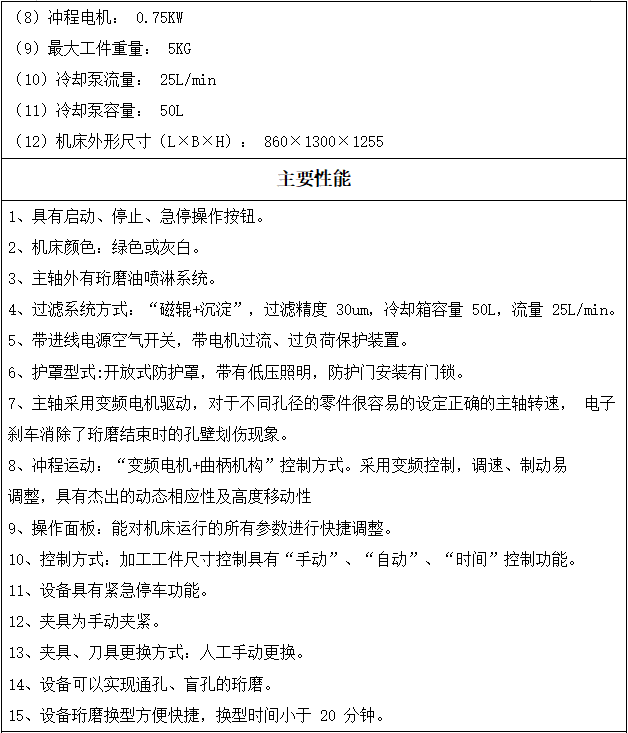 珩孔范圍: Ф3-Ф60mm ;往復行程: 0-160mm ;最大珩孔深度: 200mm