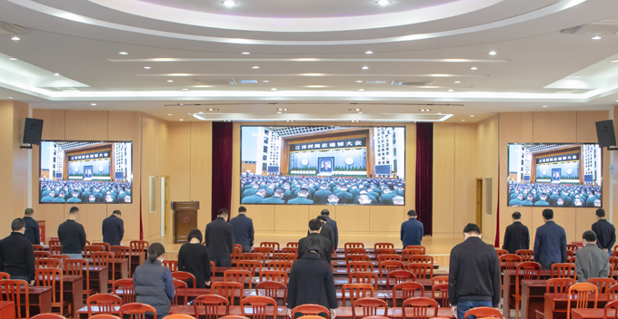 收聽(tīng)收看過(guò)程中,大家悲痛肅立,在悲壯的哀樂(lè)聲中默哀三分鐘,認(rèn)真聆聽(tīng)習(xí)近平總書(shū)記所致悼詞,追憶江澤民同志光輝的一生和建立的豐功偉績(jī),深刻感悟江澤民同志的精神風(fēng)范。