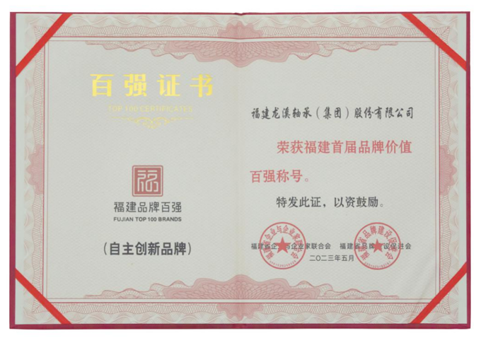 5月7日,福建首屆品牌價值百強榜單發布會在福建省寧德市舉行,發布了100個品牌企業和20個區域品牌作為福建首屆品牌價值百強榜單,龍軸集團的品牌強度位列福建品牌價值百強第4,品牌價值在自主創新品牌中位居第5。