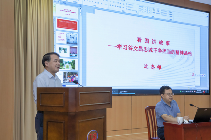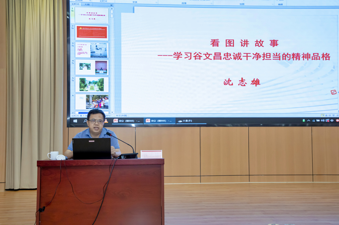 沈志雄老師圍繞“忠誠(chéng)是谷文昌精神品格最厚重的基石”“干凈是谷文昌精神品格最自然的底色”“擔(dān)當(dāng)是谷文昌精神品格最耀眼的華章”三個(gè)方面系統(tǒng)講述了谷文昌同志生平事跡,通過一幅幅珍貴的影像資料和一個(gè)個(gè)生動(dòng)的事例,大家更全面地理解谷文昌精神品格的內(nèi)涵,受到了深刻的精神洗禮。