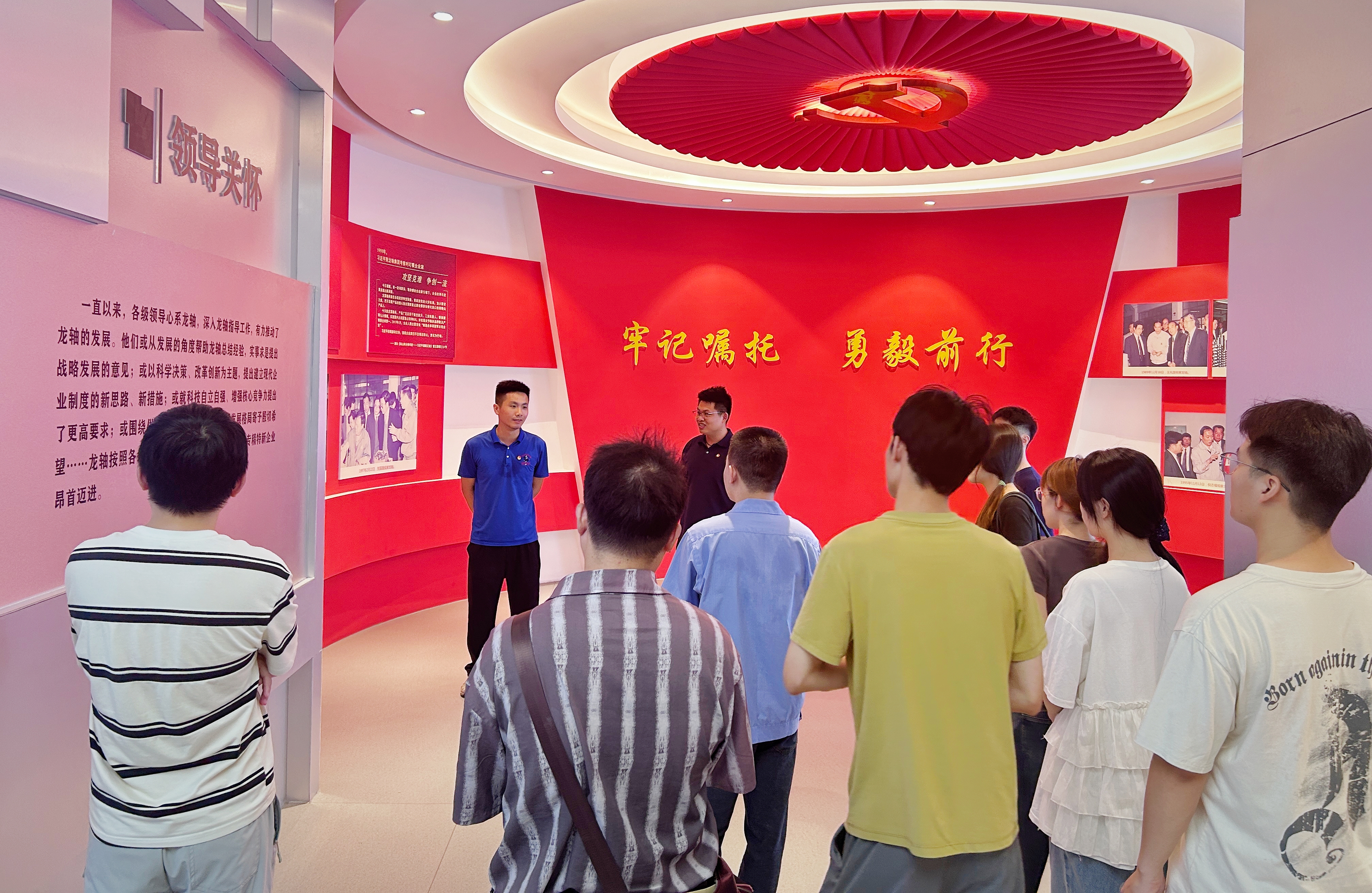 隨后,大家走進(jìn)龍軸展覽館,珍貴的照片、展品有序陳列,無聲卻有力地展現(xiàn)了公司67年來的發(fā)展歷程。團(tuán)員青年們認(rèn)真聆聽講解、不時交流感悟,在回溯企業(yè)“從無到有、從小到大、從弱到強(qiáng)”的艱辛歷程中,進(jìn)一步加深了對“求實(shí)奮進(jìn)”企業(yè)精神的理解。