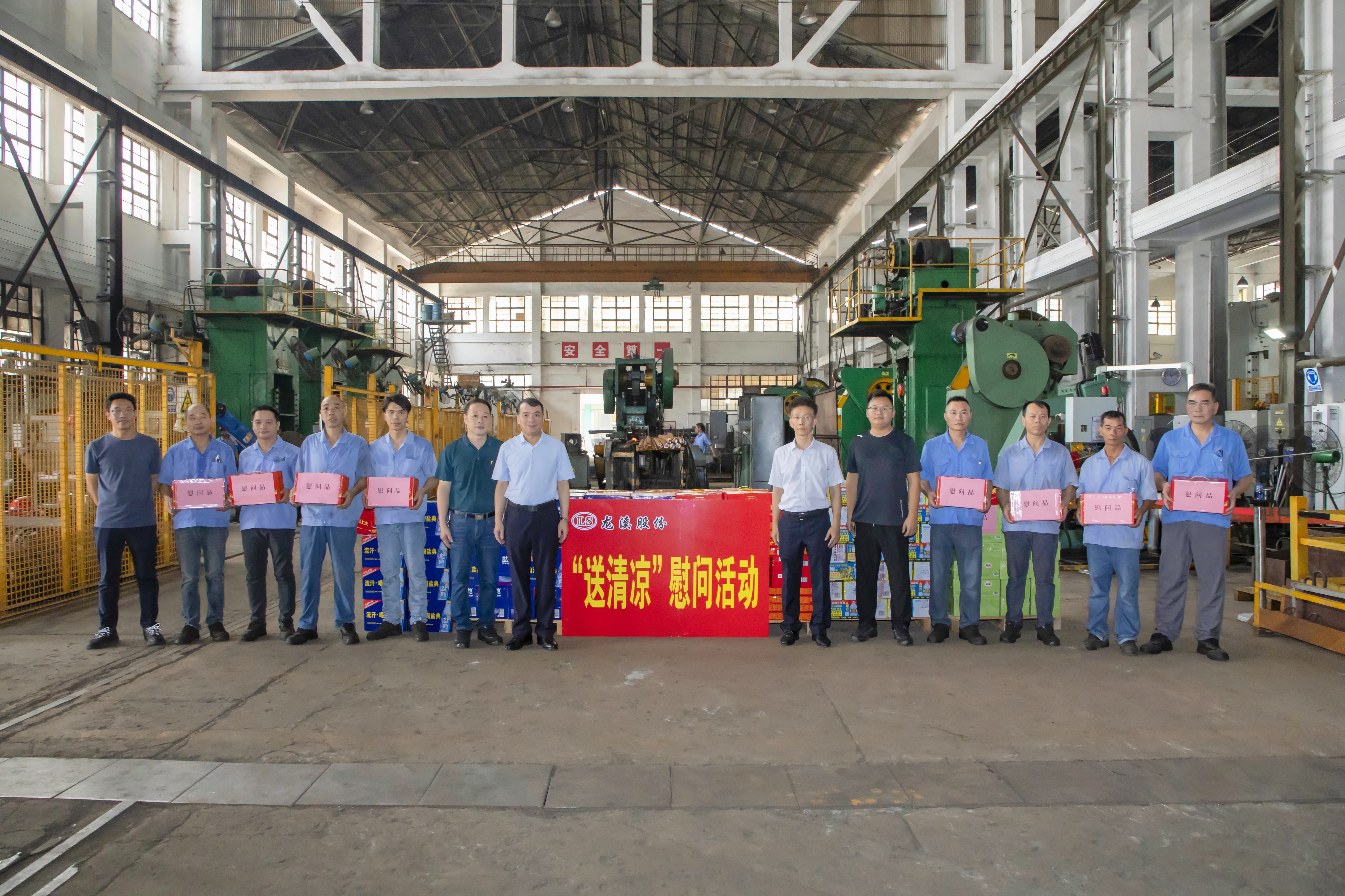 連日來,高溫天氣持續(xù),熱浪席卷廠區(qū)。為切實(shí)做好一線員工關(guān)懷工作,2025年7月17日,集團(tuán)黨委書記、董事長(zhǎng)陳晉輝,黨委副書記、總經(jīng)理陳志雄帶領(lǐng)領(lǐng)導(dǎo)班子成員分四組深入各生產(chǎn)車間開展 “送清涼” 慰問活動(dòng),為高溫崗位員工送去防暑降溫物資和誠(chéng)摯問候,讓員工感受到企業(yè)的關(guān)懷與溫暖。