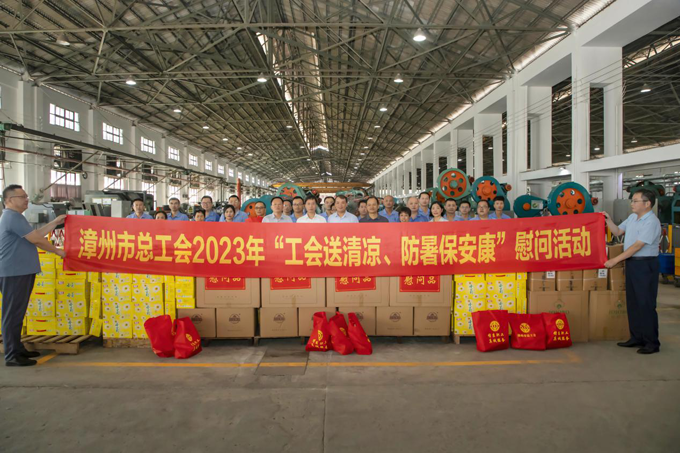 2023年7月14日,漳州市總工會(huì)黨組書(shū)記、常務(wù)副主席張哲青,黨組成員、工會(huì)副主席曾景賢帶領(lǐng)漳州市總工會(huì)慰問(wèn)團(tuán)蒞臨龍軸集團(tuán)開(kāi)展“工會(huì)送清涼、防暑保安康”慰問(wèn)活動(dòng)。龍軸集團(tuán)黨委書(shū)記、董事長(zhǎng)陳晉輝,黨委副書(shū)記、工會(huì)主席劉明福參加慰問(wèn)。