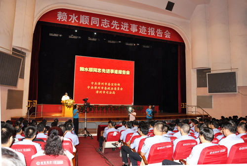 2012年8月14日上午,公司組織各支部書記赴人民劇場參加賴水順同志先進事跡報告會。市領導許榮勇、劉文標、黃雙慶、黃浦江、李惜真及市直機關干部代表、市直政法系統(tǒng)干警代表、企業(yè)單位代表、駐漳部隊官兵代表共700多人參加會議。市委常委、宣傳部長許榮勇主持報告會。