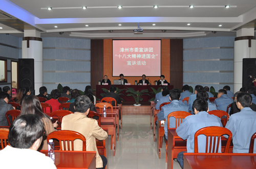 6、2013年1月31日,組織公司高管、部分中層主管36人參加市委宣傳部、市國資委組織的“黨的十八大宣講團(tuán)”到公司舉行“十八大進(jìn)企業(yè)”活動。