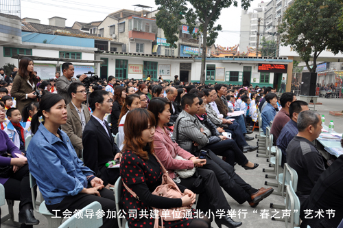 2012年3月30日上午,公司關工委委員洪麗玲、何碧珠等受我司共建單位—通北中心小學邀請,參加通北中心小學一年一度的“春之聲”校園文化藝術節活動。