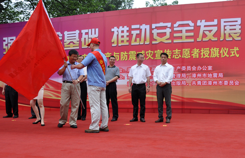 今年5月份是全市第二個防震減災宣傳月,6月份是全國第十二個“安全生產月”。6月13日上午,公司黨委副書記張泰生帶領15名安全生產志愿者代表國資系統參加漳州市2013年安全生產與防震減災宣傳志愿者授旗儀式