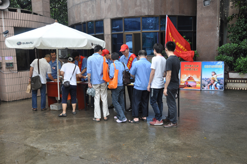 (圖b)志愿者在公司南大門(mén),為公司員工分發(fā)安全生產(chǎn)宣傳資料。