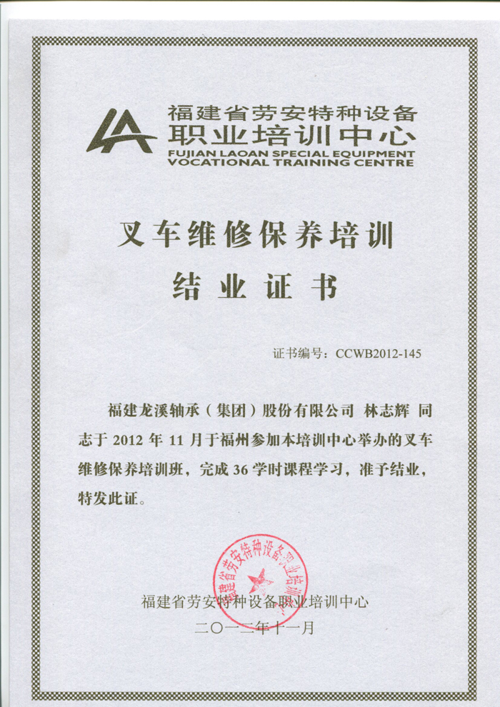 叉車維修保養(yǎng)培訓(xùn)結(jié)業(yè)證書