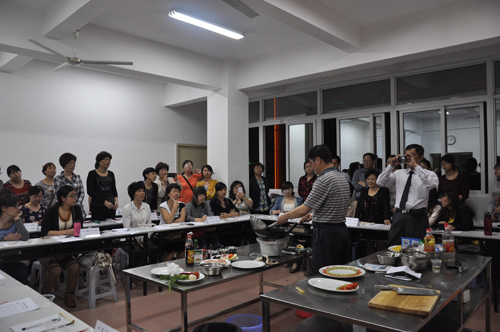 4月21日舉行了開班儀式,公司工會常務副主席洪麗玲介紹了本次培訓的目的和紀律,希望參加培訓的學員能夠開開心心學廚藝,并且能學以致用讓家人享受廚藝帶來的樂趣。隨后授課老師簡單介紹了本次廚藝的課程,從烹飪的基礎知識講起,刀功的基本要求、作用、操作姿勢、操作方法,配菜的基本要求、配菜作用、配菜方法…本次學習的菜譜不僅葷素搭配合宜,也是家??梢?,主要有芝麻雞、排糖醋肉、紅燒魚塊、椒鹽海蠣、松仁玉米、沙司茄子。每個學員手里都捧著一本筆記,仔細記下老師的做菜要點,生怕漏掉哪一個細節。在操作課上,學員們按照之前所學用心的烹飪出一道道菜,當看到桌上的美味佳肴,都不敢相信這是自己做的。