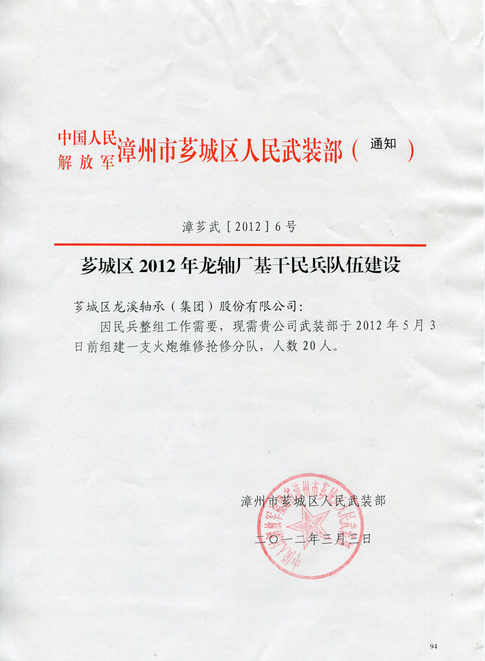 薌城區2012年龍軸廠基干民兵隊伍建設